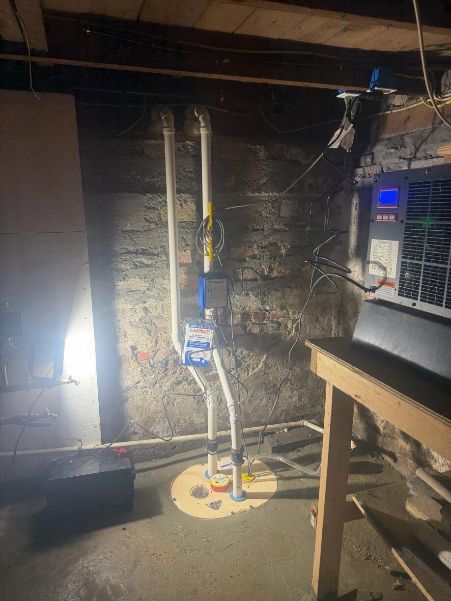 A Westbrook, ME homeowner contacted TC Hafford Basement Systems for help with their basement. They found their sump pump was running constantly and had also become full of debris. In spite of the sump pump running at all times, the basement still had moisture issues. System Design Specialist Stephen C. created a plan to upgrade their pump system. We installed a TripleSafe Sump Pump, which features two Zoeller pumps so there is a back up pump in the event of a pump failure. Both pumps will work together to increase capacity in a heavy water event. The TripleSafe also has a battery back up so it will continue to work in the event of power loss. The TripleSafe removes water from the basement through a buried exterior discharge line. The discharge line is protected against freezing in the winter with IceGuard.