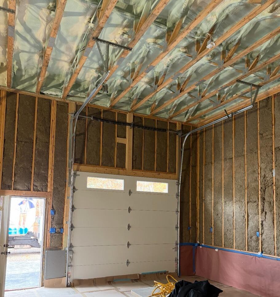 We recently completed insulating a brand new large garage build in Bath, Maine. We installed rockwool insulation on the garage walls, which is a great alternative to traditional fiberglass insulation. Rockwool is fire resistant, as well as water and mold resistant, whereas fiberglass insulation can absorb water, keeping it damp and primed for mold growth. Rockwool is also very durable and does not sag or settle like fiberglass insulation will. On the ceiling we used Spray Foam insulation to ensure all of the nooks and crannies were air tight. Spray Foam provides immediate energy savings and improvement.