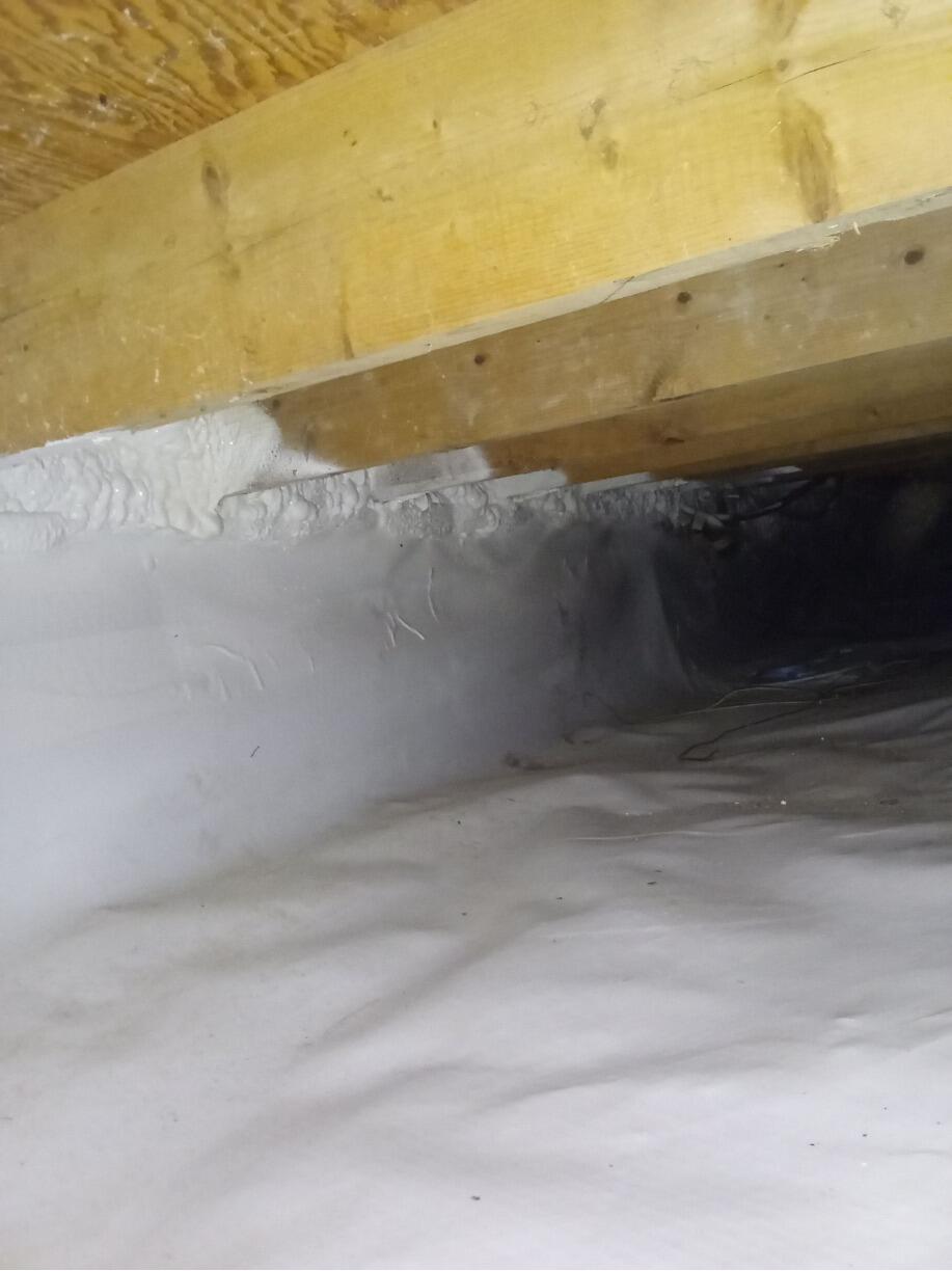 We installed CleanSpace with drainage matting, as well as SprayFoam insulation. Drainage Matting is a durable barrier with dimples to help channel water and elevate the CleanSpace, keeping it clean. CleanSpace is a durable, inorganic vapor barrier that gets attached to the walls and seals up the crawl space, keeping moisture out. SprayFoam keeps cold air out during the winter, makes the space more comfortable, and saving the homeowner money on their energy bill.