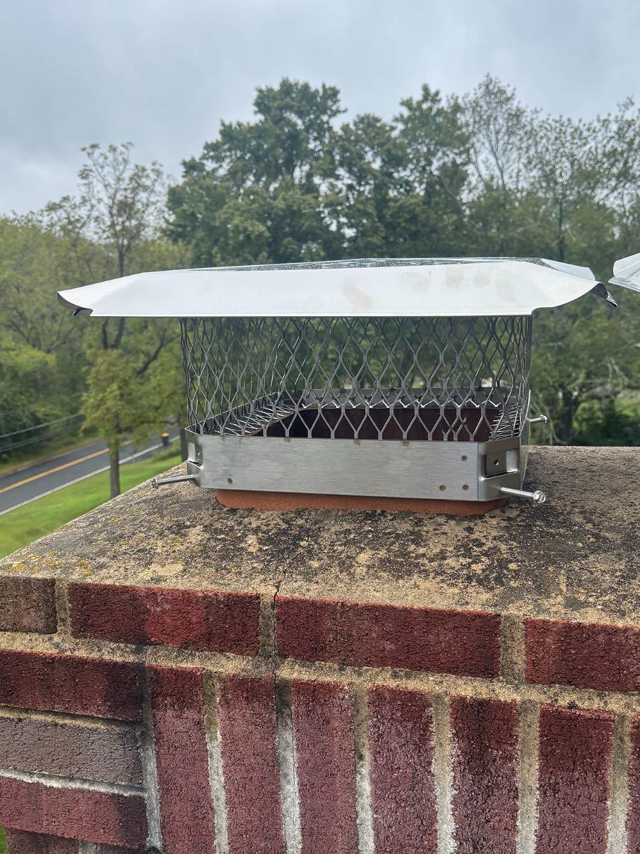 A short while after setting up our devices, we safely removed all of the starlings out of the chimney. Now, in order to make sure that both the chimney's are protected from future intrusions, we installed a chimney cap over each one. A chimney cap is a heavy-duty material that's constructed out of 24 Gauge Top and Flange, and 18 Gauge Galvanized Mesh! It is designed to prevent access to the chimney from all nuisance wildlife and birds. Now both chimneys are properly excluded!