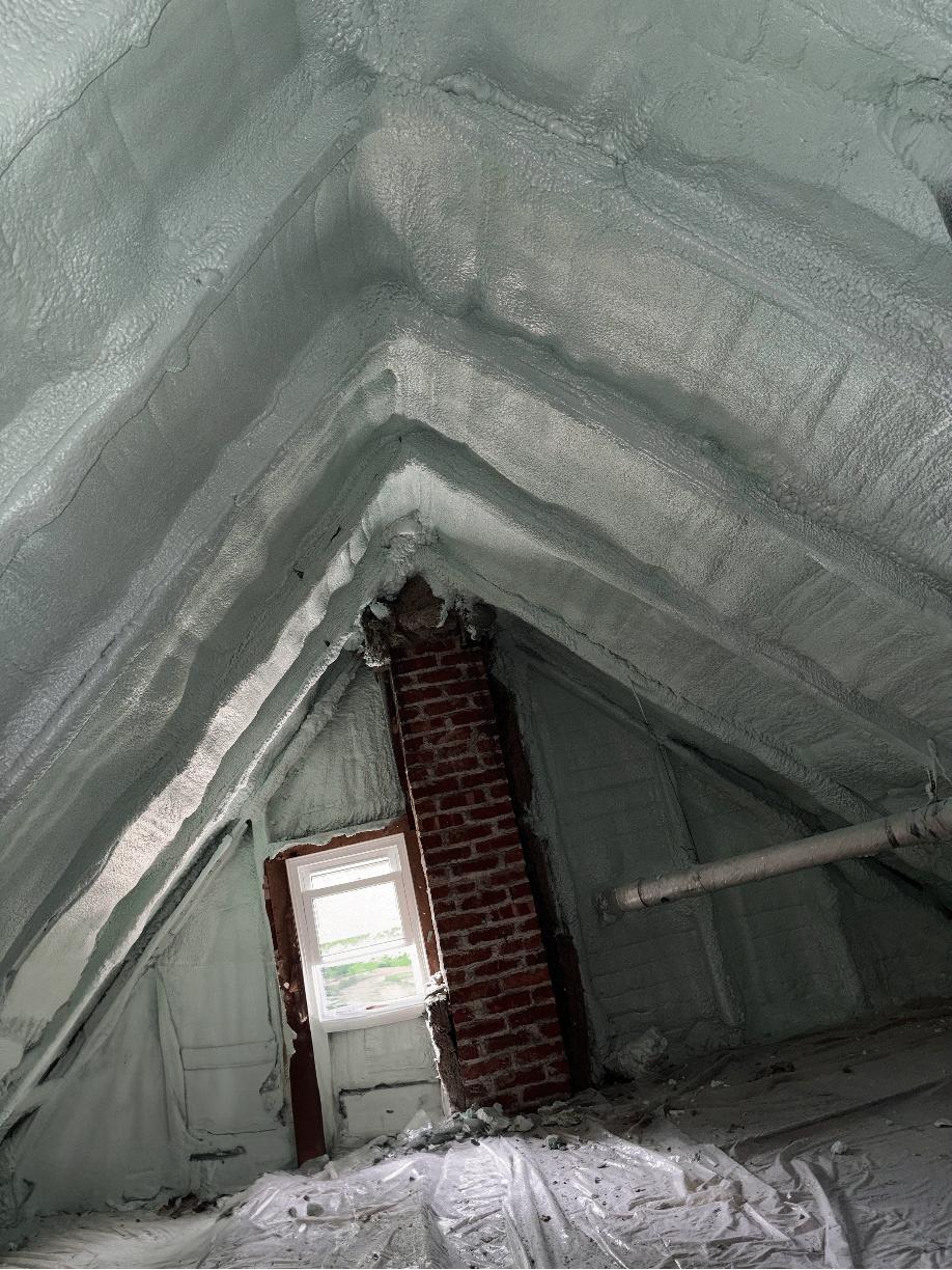 From unused attic to future living space—this project started with 4" of spray foam on the roof deck and 2" on the gable end walls to create a properly insulated environment.