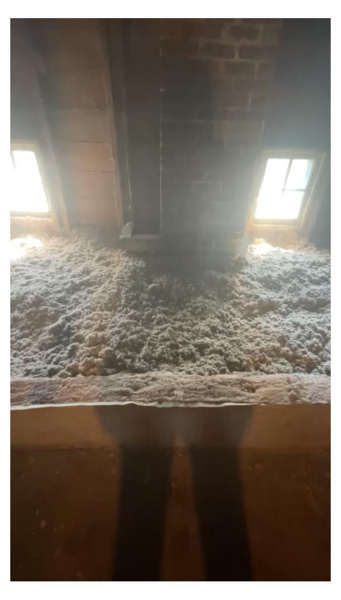 Primary Home Improvements removed old, degraded fiberglass and debris from this attic in order to produce a clean slate. Once cleaned, the attic crew blew-in densely packed cellulose insulation across the entire attic floor. This helped to achieve a temperature controlled and protected home.