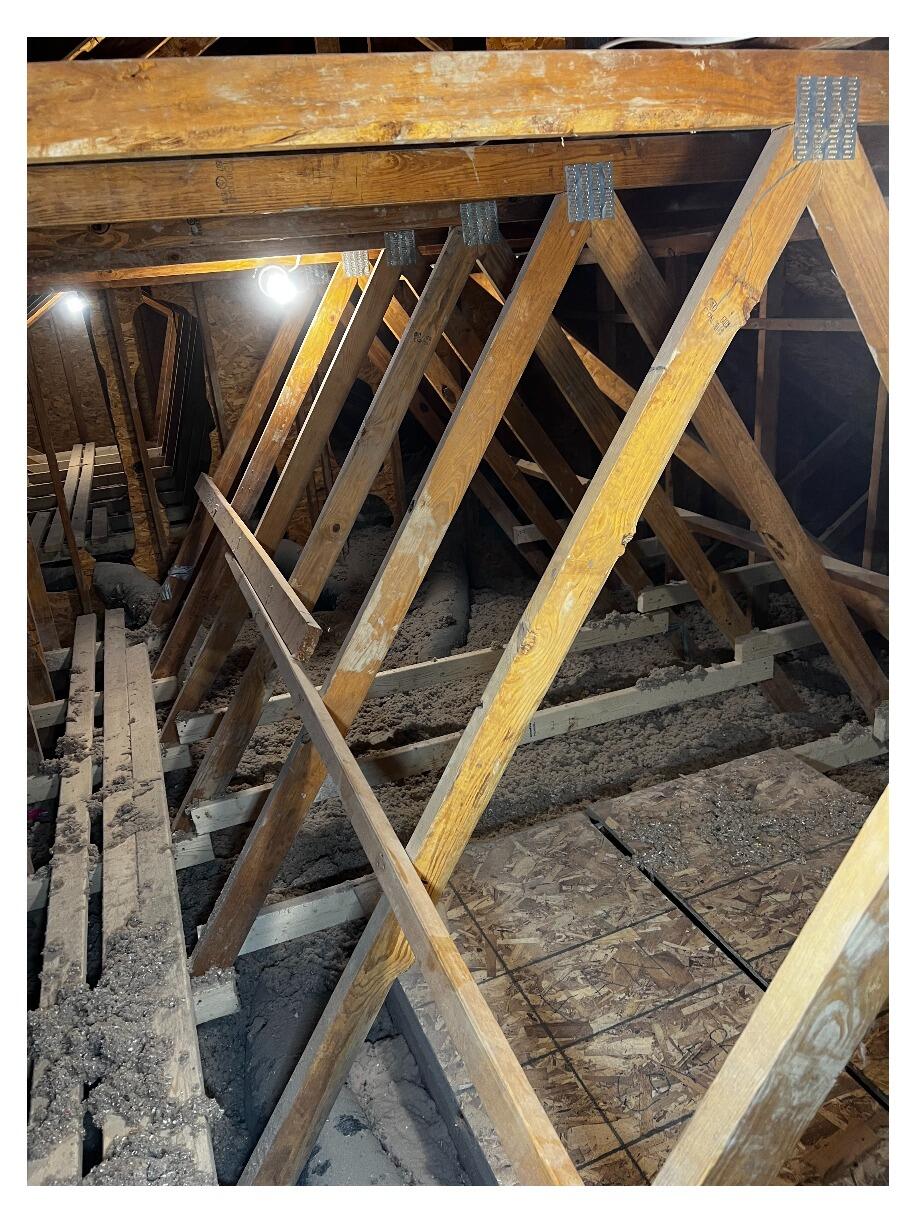 Settled fiberglass was replaced with densely packed cellulose in order to protect this home from drafts! TruSoft cellulose is a long-lasting product that stops air infiltration at the source.