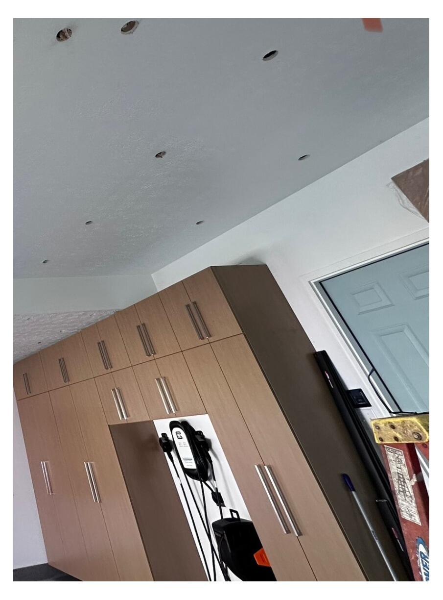 You can barely tell that our team of expert foam installers filled this garage ceiling with RetroFoam. This patented injection foam insulation fills every space and cures within 48 hours, leaving an air tight seal! No torn down walls in sight!