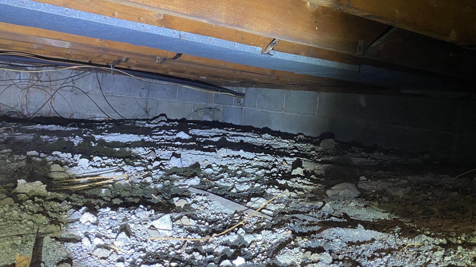 The HES team removed the old pressed board, the fiberglass bat insulation and the old blown in cellulose. The whole area was dried using an air scrubber and dehumidifiers. The mold was then treated and HEPA vacuumed.